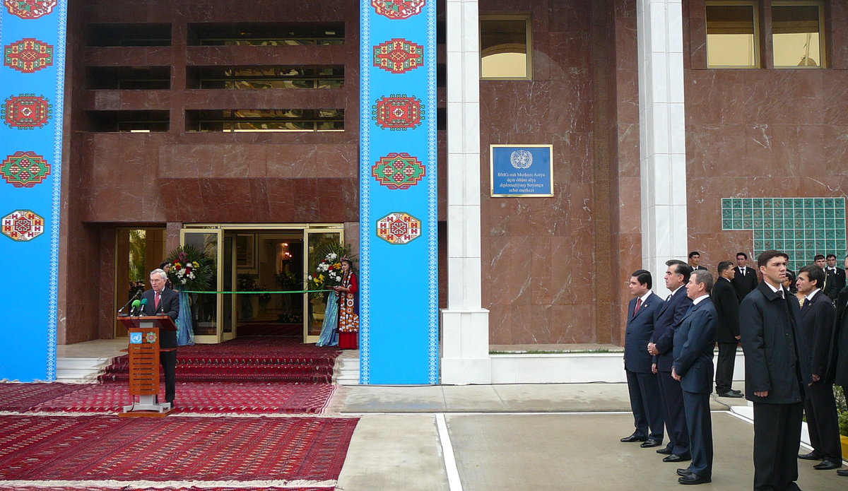 The inauguration of the United Nations Regional Centre for Preventive Diplomacy took place on 10 December 2007 in Ashgabat. While initiating this proposal, the Governments took into consideration the multiple threats that face Central Asia, including international terrorism and extremism, drug trafficking, organized crime and environmental degradation.