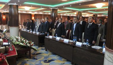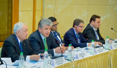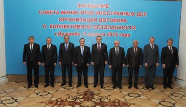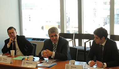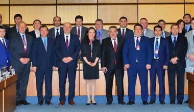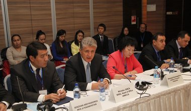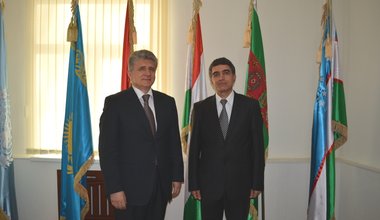 Miroslav Jenča, Special Representative of the UN Secretary-General, Head of the UN Regional Center for Preventive Diplomacy for Central Asia (UNRCCA), with the Speaker of the Senate of the Parliament of Kazakhstan Kassym-Jomart Tokayev, April 2015, Astana, Kazakhstan