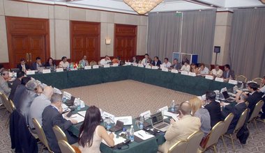 The Special Representative of the Secretary-General and Head of UNRCCA, Miroslav Jenča, in Astana with Minister of Foreign Affairs Erlan Idrissov, on 21 October, 2014 Kazakhstan