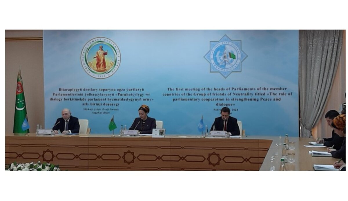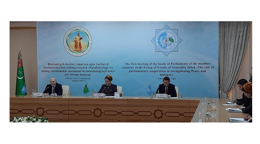 Встреча, в которой приняли участие руководители и представители парламентов стран-членов Группы друзей нейтралитета, межпарламентских организаций, Межпарламентского союза (МПС) и Межпарламентской Ассамблеи государств-участников Содружества Независимых государств, состоялась под председательством Председателя Меджлиса Туркменистана Дуньягозель Гулмановой.