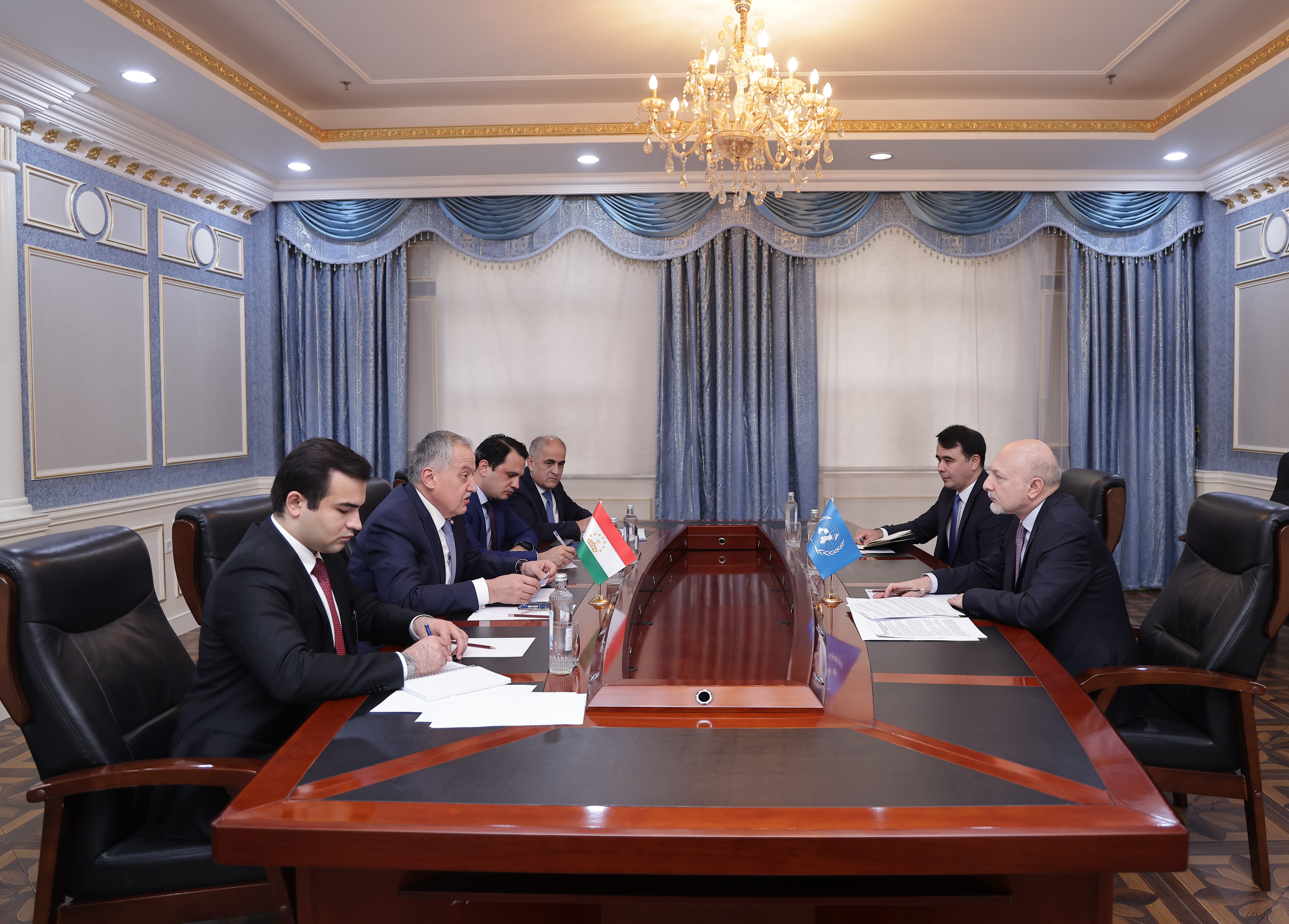 On 2 June, SRSG Imnadze met with H.E. Mr. Sirojiddin Muhriddin, Minister of Foreign Affairs of Tajikistan. The two sides reaffirmed their mutual commitment to enhancing cooperation between Tajikistan and the United Nations system across a broad spectrum of areas, including the prevention of modern security threats, environmental protection, the sustainable management of water resources, and the preservation of glaciers, in line with national and regional priorities.