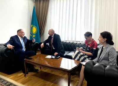 On the sidelines of the Forum, SRSG Imnadze met with H.E. Akan Rakhmetullin, First Deputy Minister of Foreign Affairs of the Republic of Kazakhstan. Their discussions focused on the regional peace and security agenda, ongoing cooperation between Kazakhstan and the United Nations Regional Centre, and preparations for upcoming joint events.
