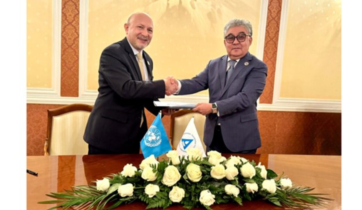 On 31 May, on the margins of the International High-Level Conference on Glaciers’ Preservation, held in Dushanbe, the Republic of Tajikistan, SRSG Kaha Imnadze and Chairman of the Executive Committee of the International Fund for Saving the Aral Sea, Mr. Askhat Orazbay, signed a Memorandum of Understanding on Cooperation to develop monitoring mechanisms and preventive response to environmental threats in the Aral Sea Basin. The MoU is aimed at strengthening cooperation and coordination between the two regional entities in responding to climate and ecological challenges faced by the Central Asian states, and improving socio-economic conditions in the Aral Sea Basin.