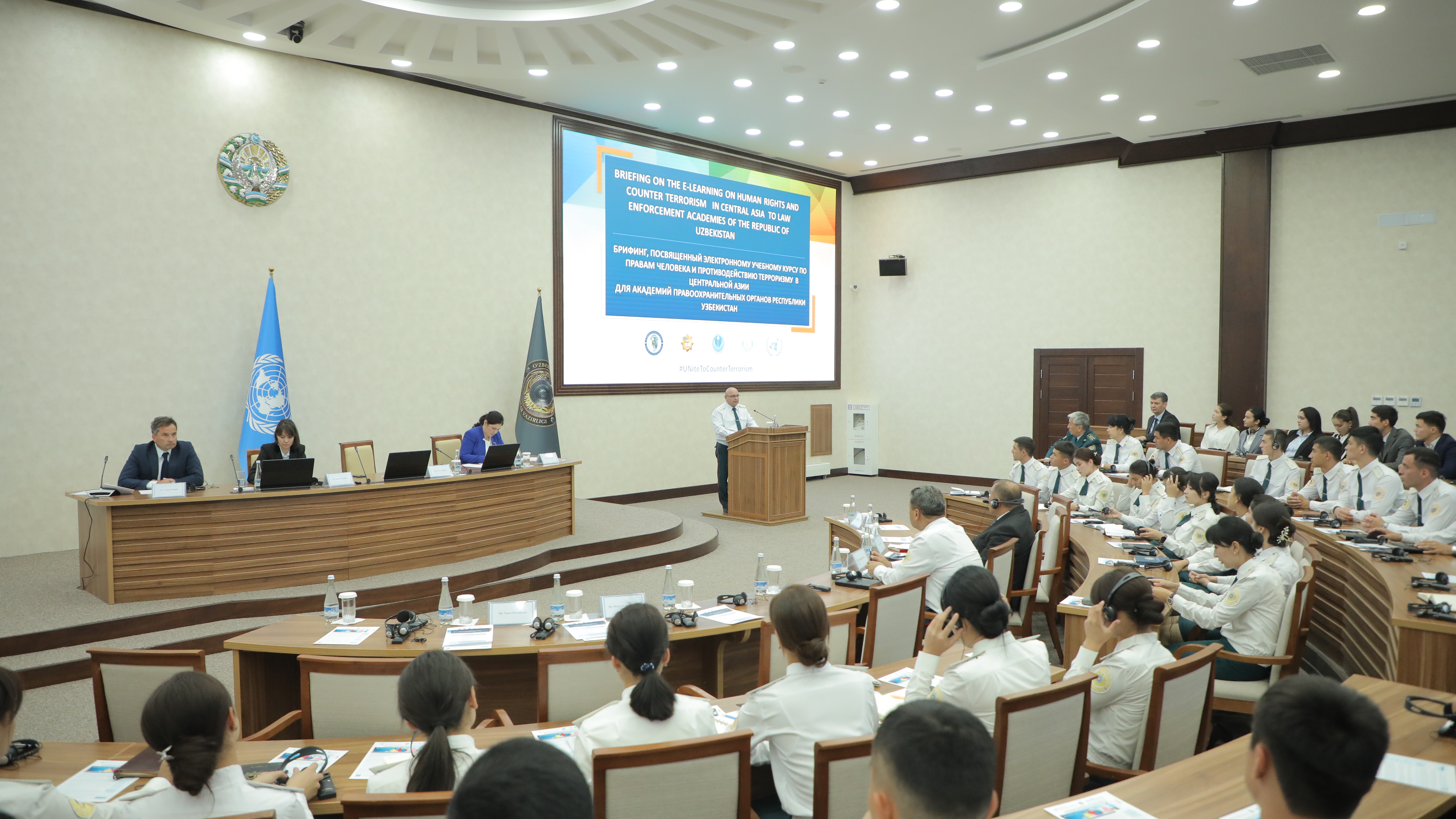 On 27 September 2023, the United Nations Regional Centre for Preventive Diplomacy for Central Asia (UNRCCA) together with the United Nations Office of Counter-Terrorism (UNOCT) and in close partnership with the state institutions of the Republic of Uzbekistan, namely the Academy of the Ministry of Internal Affairs, the State Security Service, the Institute for Strategic and Regional Studies and the National Center for Human Rights, organized a briefing on the e-learning course on the protection and promotion of human rights and the rule of law in the context of counter-terrorism in Central Asia.
